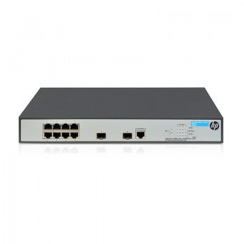 HPE OfficeConnect 1920 Series switches are advanced Gigabit web managed "smart" switches supporting Layer 3 static routing, Access Control Lists, 802.1X network login. This JG921A has 8 x 10/100/1000 PoE+ enabled ports plus two additional (non combo) Gigabit SFP ports for fiber connectivity. Notable additional features include three levels of Spanning Tree Protocol STP, RSTP, MSTP IPv4/IPv6 management and routing, STP root guard, and ARP and DOS attack protection. Part of the OfficeConnect portfolio of small business networking products from Hewlett Packard Enterprise.
