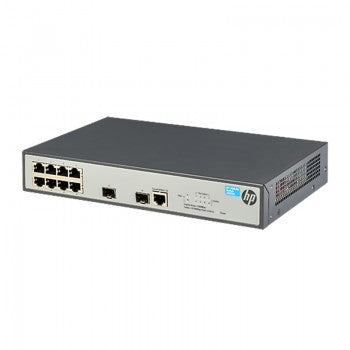 HPE OfficeConnect 1920 Series switches are advanced Gigabit web managed "smart" switches supporting Layer 3 static routing, Access Control Lists, 802.1X network login. This JG920A has 8 x 10/100/1000 ports plus two additional (non combo) Gigabit SFP ports for fiber connectivity. Notable additional features include three levels of Spanning Tree Protocol STP, RSTP, MSTP IPv4/IPv6 management and routing, STP root guard, and ARP and DOS attack protection. Part of the OfficeConnect portfolio of small business networking products from Hewlett Packard Enterprise.