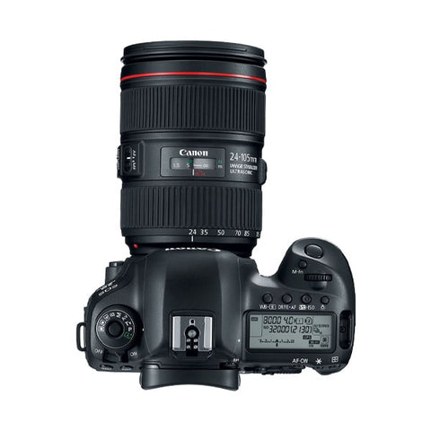 The body has been further refined for comfort and ease of access, as well as durability and weather resistance. The Canon N3 remote port has been relocated to the front of the camera body and they have added both GPS and Wi-Fi with NFC to make this model a connected camera. This kit bundles the camera with the EF 24-105mm f/4L IS II USM Lens, an updated version of one of the most popular zoom lenses ever available in Canon's lens lineup. Offering an extremely versatile 24-105mm zoom range as well as a constant f/4 maximum aperture and image stabilizer, users can shoot a variety of subjects with ease. This model also features improved peripheral illumination compared to its predecessor.