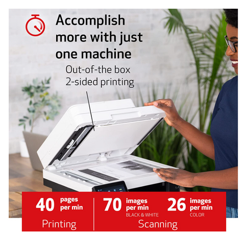 The imageCLASS MF455dw lets you print up to 40 ppm in letter size and 32.4 ppm in legal size. The copy speed is the same. The scan function supports letter, legal, and statement document sizes and scans can be made in color. Duplex scanning is supported.