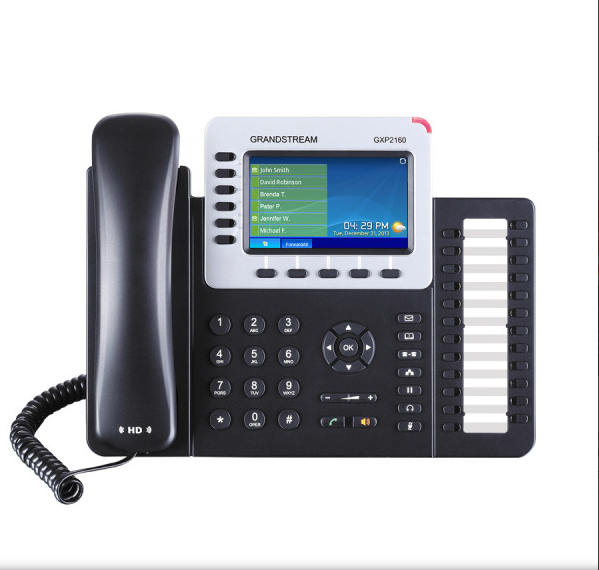 The Grandstream GXP2140 is a 4-line enterprise VoIP phone with advanced functionality and performance. The GXP2140 features HD voice, dual Gigabit RJ45 ports and a 480x272 TFT color display which also for easy use of its integrated web applications.