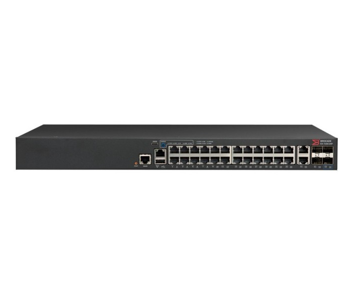 ICX 7150 switch, 24x 10/100/1000 PoE+ port, 2x 1G RJ45 uplink port, 4x 1G SFP uplink port, can be purchased to upgrade to 4x 10G SFP+, 370W PoE power, basic Layer 3 (static routing and RIP)