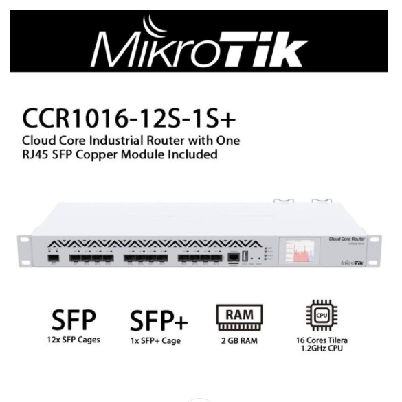 - CCR1016 is an industrial grade router with a cutting edge 16 core Tilera CPU. This model has twelve SFP ports and one SFP+ port for 10G connectivity