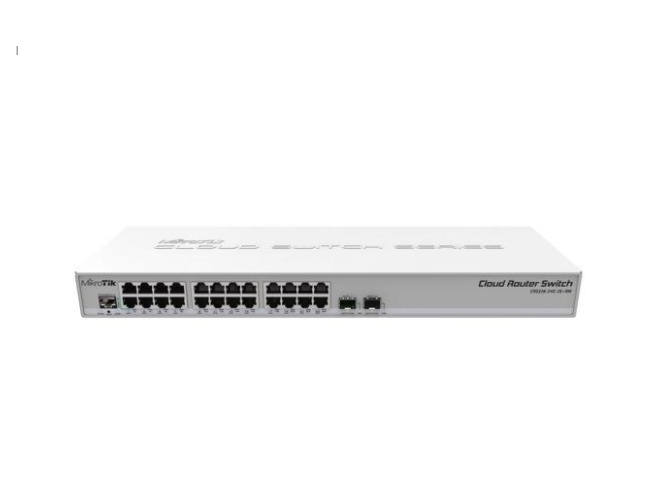 - SwOS/RouterOS powered 24 port Gigabit Ethernet switch with two SFP+ ports wire speed connectivity with several new switching features