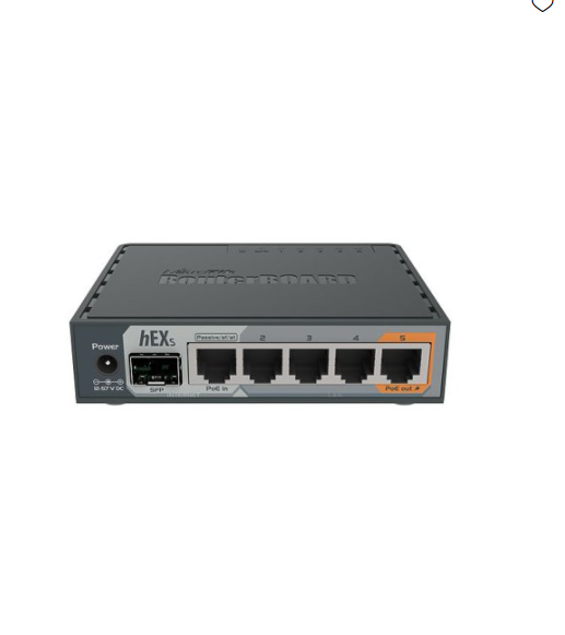 hEX S is a five port Gigabit Ethernet router for locations where wireless connectivity is not required. Compared to the hEX, the hEX S also features an SFP port and PoE output on the last port.It is affordable, small and easy to use, but at the same time comes with a very powerful dual core 880 MHz CPU and 256 MB RAM, capable of all the advanced configurations that RouterOS supports. The device has a USB 2.0, PoE output for Ethernet port #5 and a 1.25Gbit/s SFP cage.IPsec hardware encryption (~470 Mbps) and The Dude server package is supported, microSD slot on it provides improved r/w speed for file storage and Dude.Mikrotik hEX S Gigabit Ethernet Router with SFP Port RB760iGS