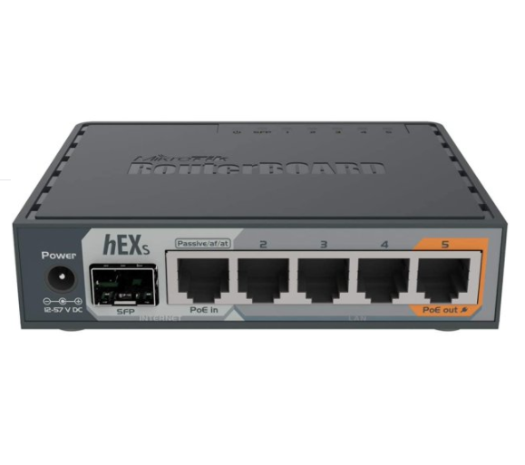 - Mikrotik hEX S (RB760iGS) is a five port Gigabit Ethernet router for locations where wireless connectivity is not required.